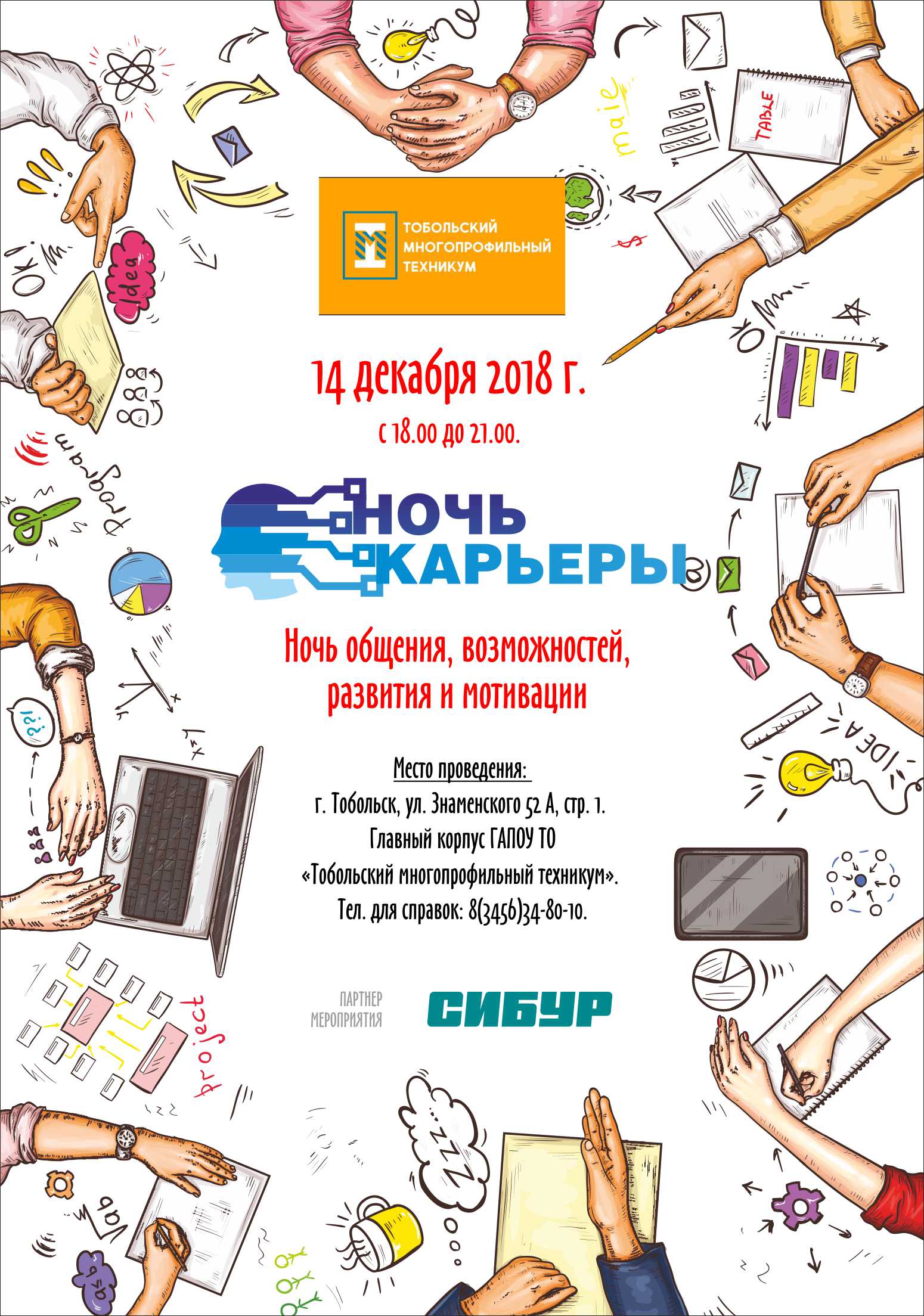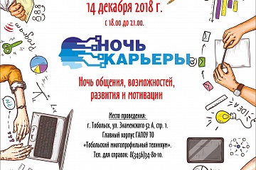 14 декабря ГАПОУ ТО «Тобольский многопрофильный техникум» будет встречать гостей! В 18:00 стартует уже ежегодный профориентационный марафон «Ночь карьеры».