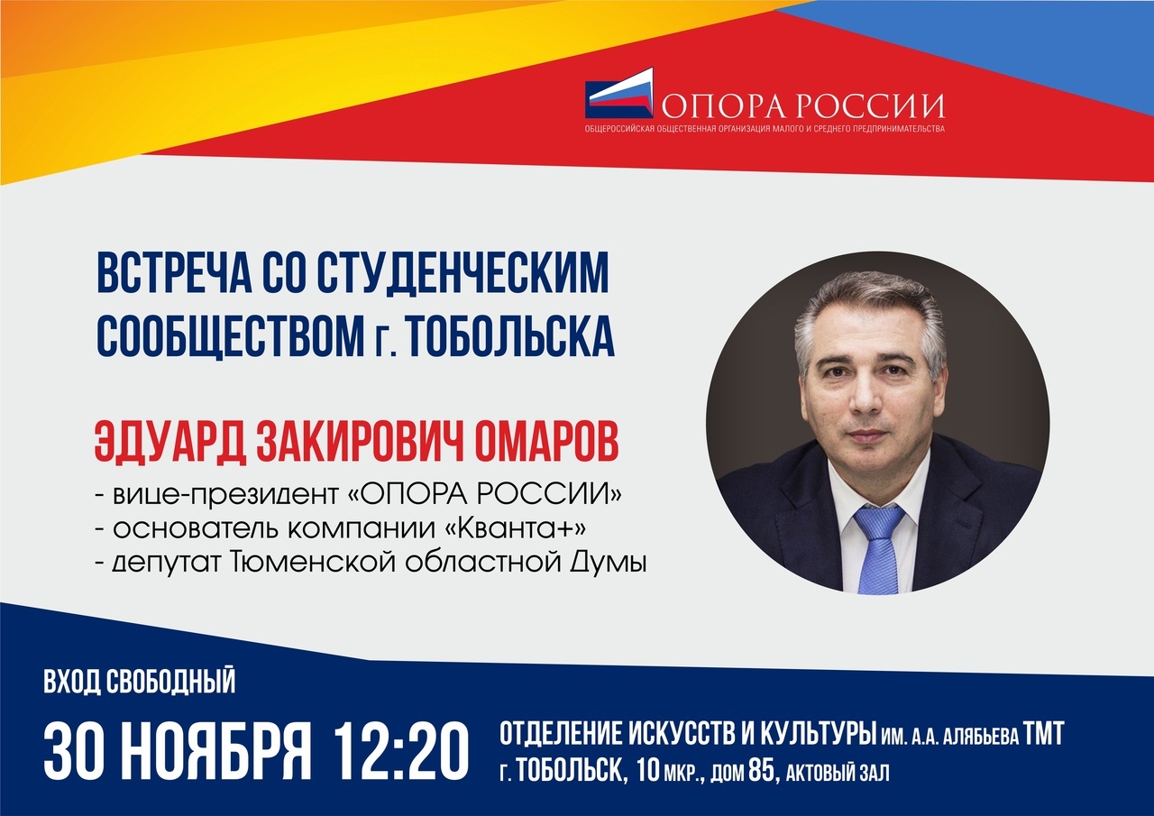 На открытие студенческой площадки приехал известный тюменский предприниматель, вице-президент «Опоры России», депутат Тюменской областной думы Эдуард Омаров. И в рамках открытия прошла встреча Эдуарда Омарова со студентами техникума, где он поделился с молодёжью своей историей успеха, рассказал, какие жизненные принципы необходимо соблюдать, чтобы стать успешным в предпринимательстве, политике и общественной жизни, дал студентам много полезных советов.