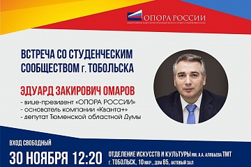 Для достижения этих целей в Тобольском Многопрофильном техникуме совместно с Тобольским отделением "Опоры России" 30 ноября 2018 года открылся студенческий центр "Точка Опоры".