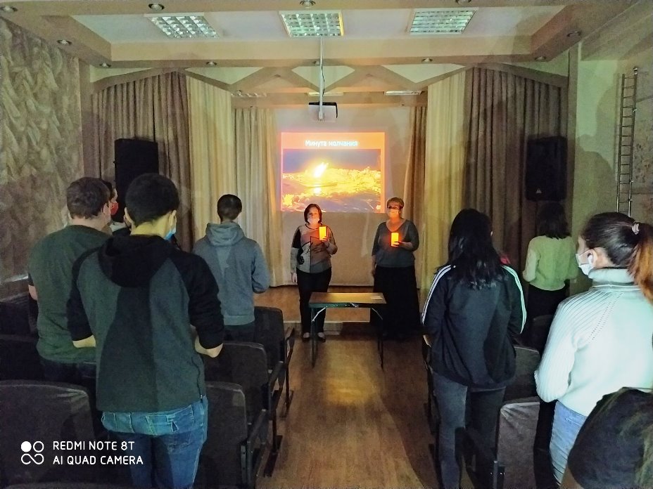 Студенты Тюменского колледжа транспортных технологий и сервиса (группа ТЭ-1-20в, куратор Ирина Фетисова, группа ТЭП -1-20в, куратор Надежда Сваткова) приняли участие в акции «Свеча памяти» и почтили минутой молчания всех погибших в той страшной войне.